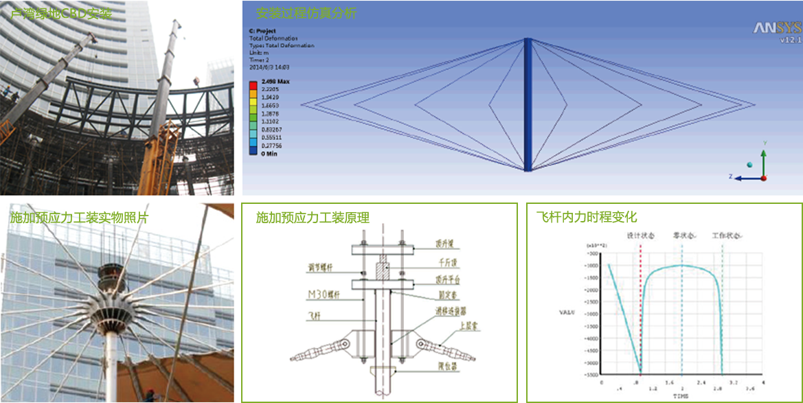空间异形钢结构是将复杂空间钢网架结构的施工过程分为安装阶段和卸除支撑阶段。